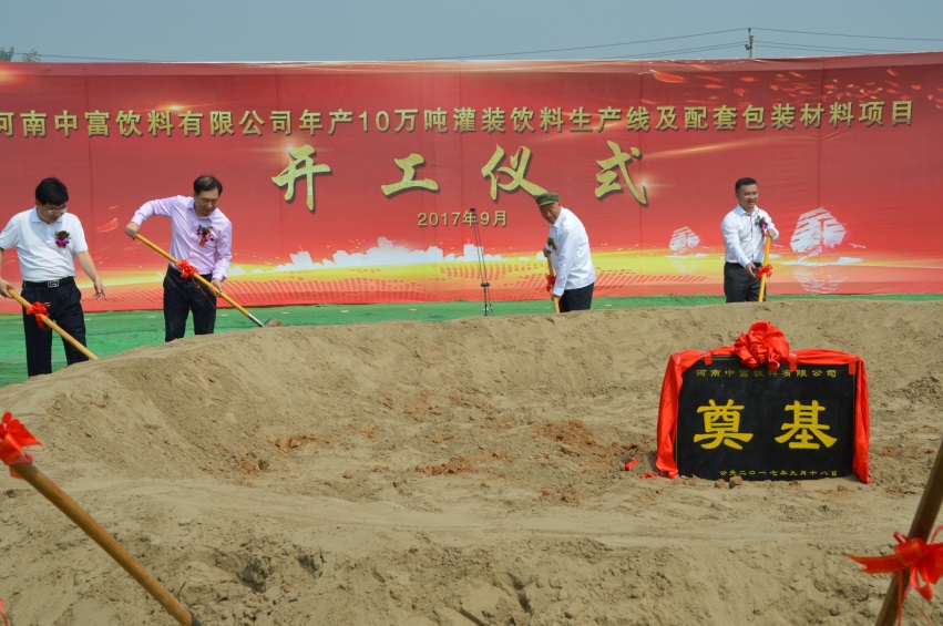 2017年9月18日,天空澄碧,纖云不染,河南中富隆重舉行了“年產(chǎn)10萬噸灌裝飲料線及配套包裝材料項目”(以下簡稱“新項目”)奠基儀式,珠海中富實業(yè)股份有限公司主要領(lǐng)導(dǎo)、新鄉(xiāng)市相關(guān)領(lǐng)導(dǎo)、衛(wèi)輝市相關(guān)領(lǐng)導(dǎo)應(yīng)邀參加了此次奠基儀式,共同見證這一載入史冊的難忘時刻,奠基儀式由衛(wèi)輝市市長范士富先生主持,衛(wèi)輝市市委書記梁常運先生為奠基儀式致詞,珠海中富實業(yè)股份有限公司總經(jīng)理張海濱先生代表中富集團作了重要發(fā)言。